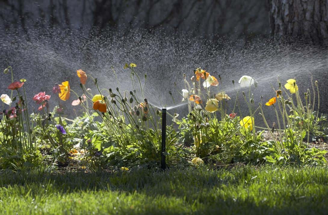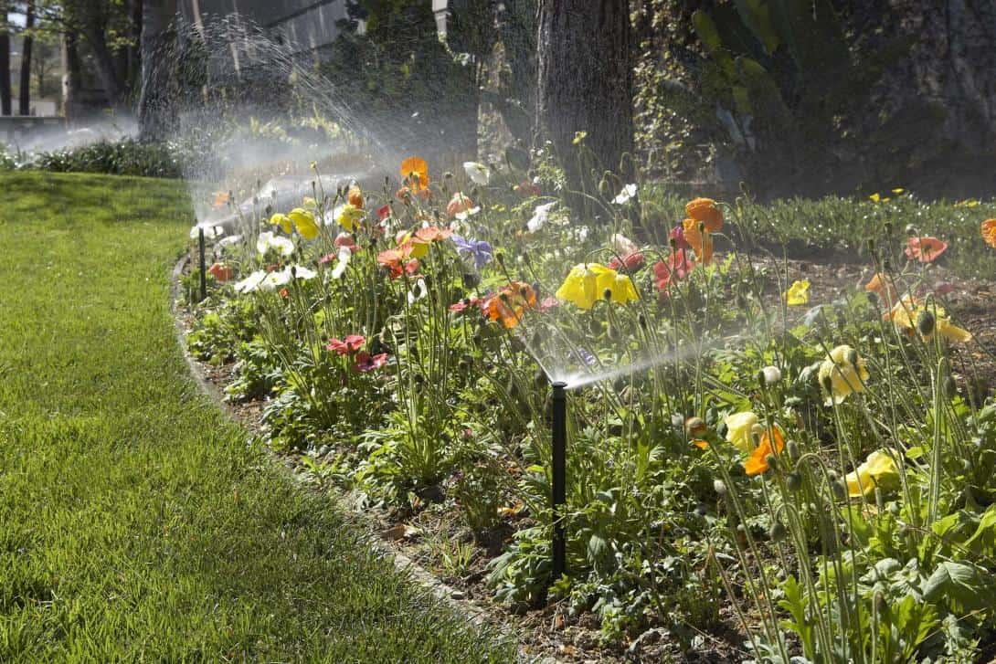 Firstly, each sprinkler &/or nozzle has a specified spray radius. Secondly, sprinklers are typically designed to deliver more water at their base & progressively less the further away you get. For this reason, you want to position sprinklers so they spray to hit the base of the next sprinkler. Of course this isn’t possible all the time so in those cases, aim to spray at least 80% of the way. By doing this you will guarantee even water across your lawn or garden.