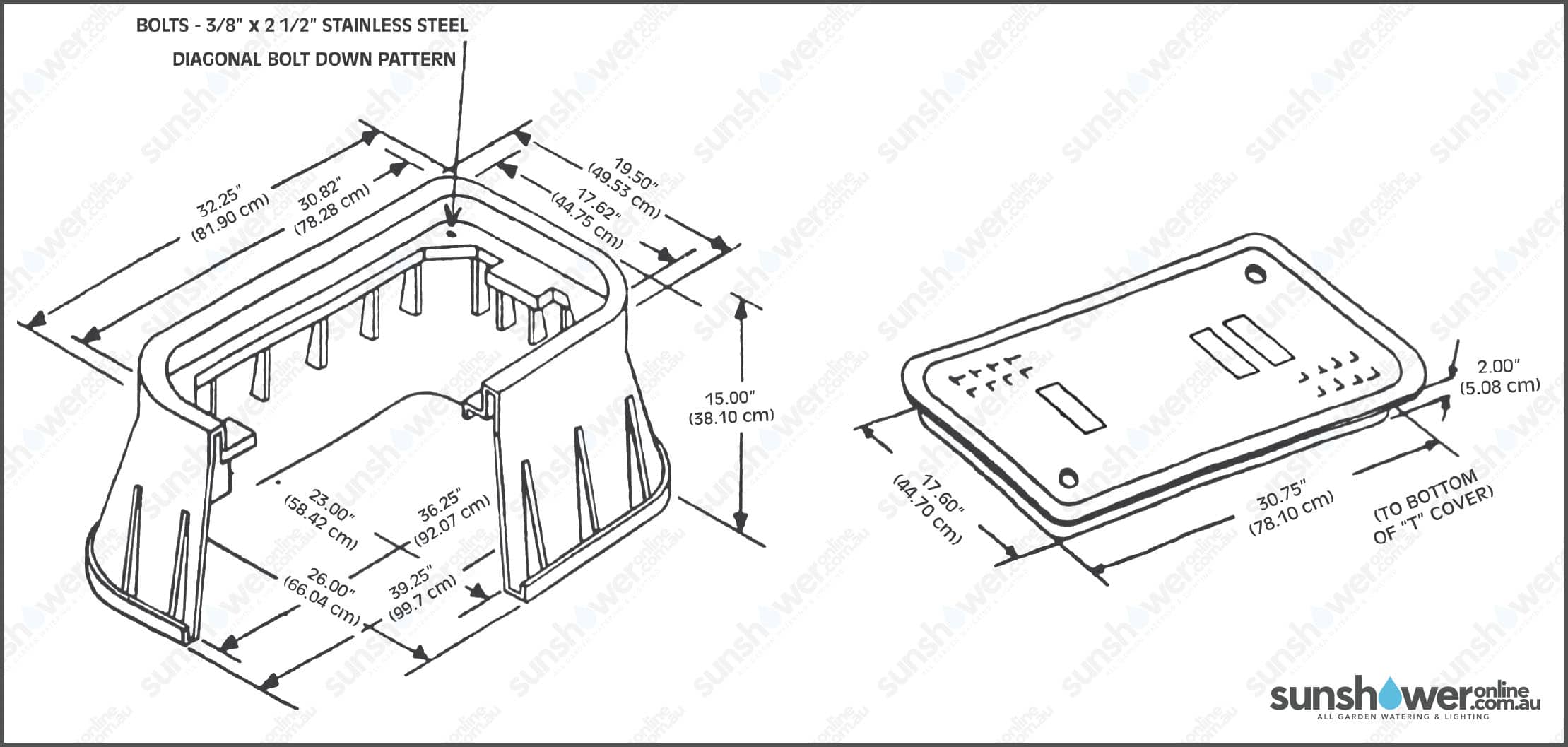 This monster rectangular green valve box is ideal for protecting up to ten buried solenoid valves. Being named a ‘monster’ is no over statement, its huge size means that multiple valves can be positioned in a number of configurations to best suit your irrigation system. It can also be used to protect large ball valves, filters and other irrigation components that need to be accessible.