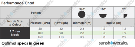 Each spray & dripper provides water at different rates, but the key factor is the flow rate of your water supply. Work that out with a simple timed bucket test. From there, you can work out how much water each sprinkler you’re looking at uses & work within your flow limit. For more information, check our Product Guides.