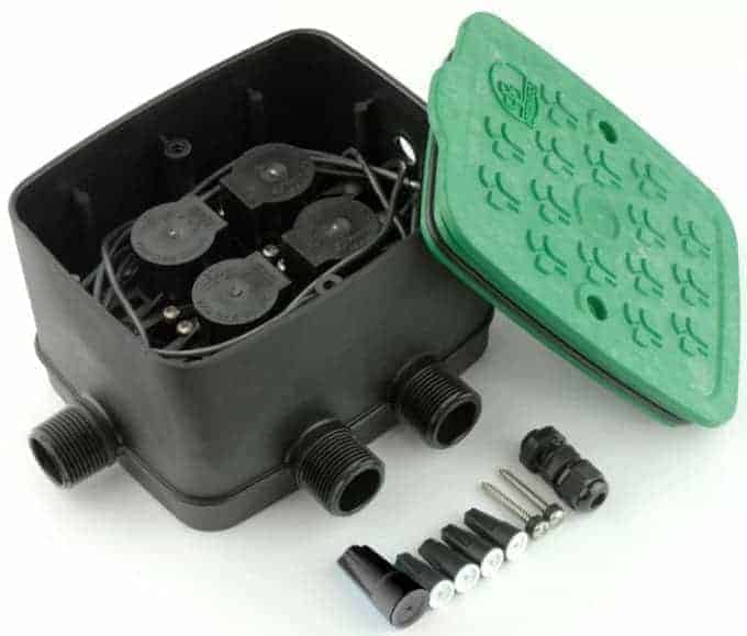 It’s a compact 4 watering zone valve system all enclosed in a weatherproof box.