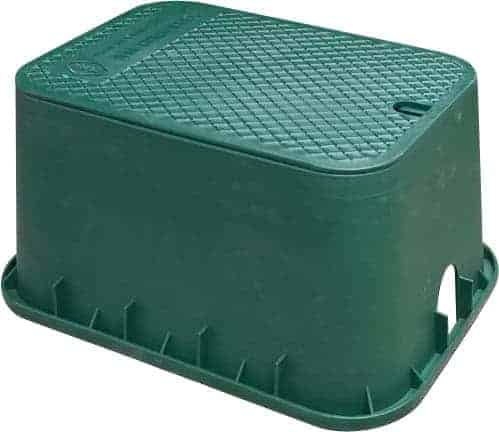 This jumbo deep rectangular green valve box is ideal for protecting up to six buried solenoid valves. Being a deep valve box, it can be used to protect valves deeper under the surface and its larger size means that multiple valves can be positioned in a number of configurations to best suit your irrigation system. It can also be used to protect large ball valves, filters and other irrigation components that need to be accessible. Valve boxes are a great way to protect your solenoid valves from extreme weather conditions as potential damage by children and pets. And when it comes to future maintenance a valve box makes your valves far more accessible and easier to find.