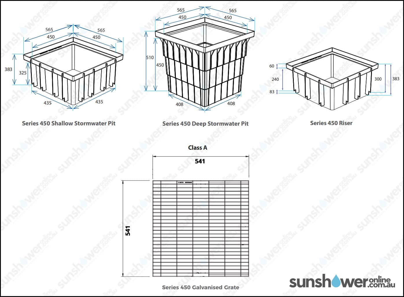 | Everhard Series 450 Deep Stormwater Pit | Everhard Series 450 Pit Extension | Everhard Series 450 Galvanised Grate | |