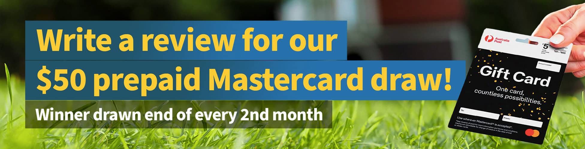 When you get either email simply send us your thoughts & we’ll put you into the draw to win a $50 Prepaid Mastercard.