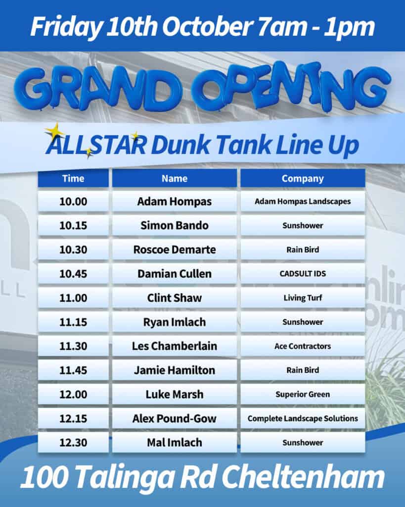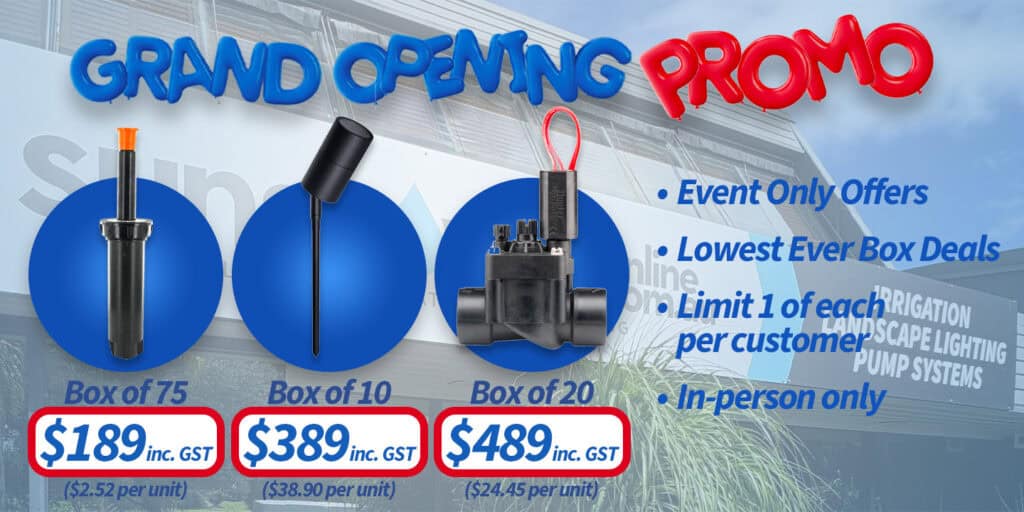 See you at Talinga Rd for brekkie, bargains and a first look at the new home of all things irrigation and lighting.