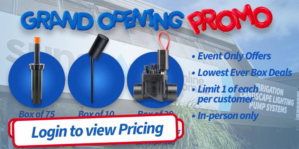 - On-site specials: Event-only deals across irrigation, lighting, pumps, pipe, fittings and more