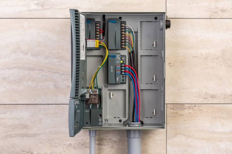 A two-wire cable is run from the controller, with decoders installed at each valve location. Each decoder is programmed with a unique address to operate its assigned valve.