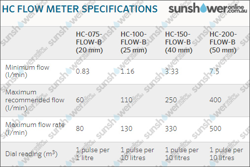 | 20mm Hunter HC (Hydrawise) Flow Meter | 25mm Hunter HC (Hydrawise) Flow Meter | 40mm Hunter HC (Hydrawise) Flow Meter | 50mm Hunter HC (Hydrawise) Flow Meter | Hunter HC Wireless Flow Meter Kit (inc. Transmitter & Receiver) | |