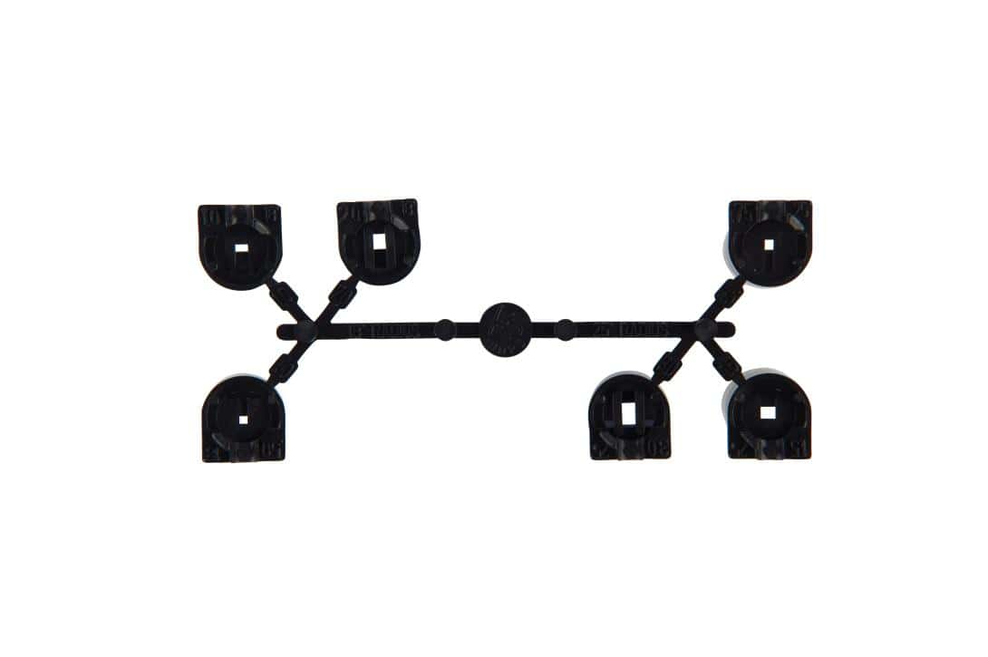 The black short radius nozzle rack comes with 6 nozzle choices and allows for a shorter throw compared to the standard blue nozzle rack.