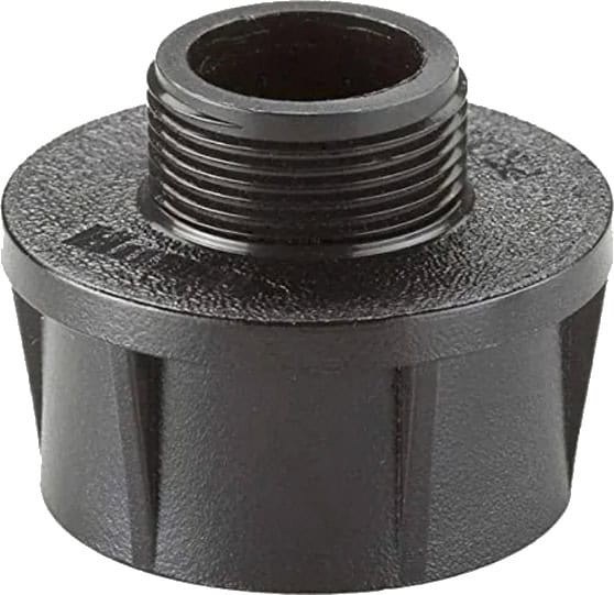 This black shrub spray adaptor is designed to adapt Hunter & Rain Bird Fan Spray & Low Flow Rotary nozzles onto 15mm Poly Risers or 15mm PVC Risers.