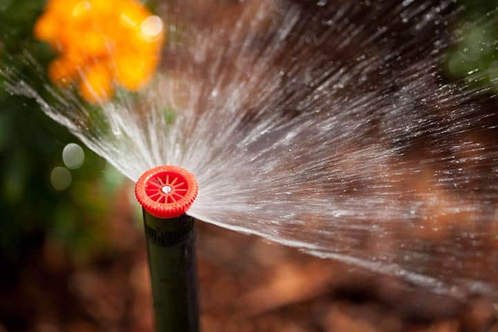 Firstly, each sprinkler &/or nozzle has a specified spray radius. Secondly, sprinklers are typically designed to deliver more water at their base & progressively less the further away you get. For this reason, you want to position sprinklers so they spray to hit the base of the next sprinkler. Of course this isn’t possible all the time so in those cases, aim to spray at least 80% of the way. By doing this you will guarantee even water across your lawn or garden.