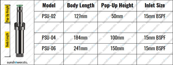 Note: Sprinkler sizing relates to pop-up height, not overall body size.