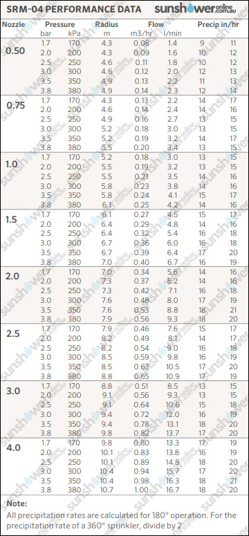 Each sprinkler & nozzle will push out water at different rates, but the key factor is the flow rate of your water supply. Work that out with a simple timed bucket test. From there, you can work out how much water each sprinkler you’re looking at uses & work within your flow limit. For more information, check our Product Guides.
