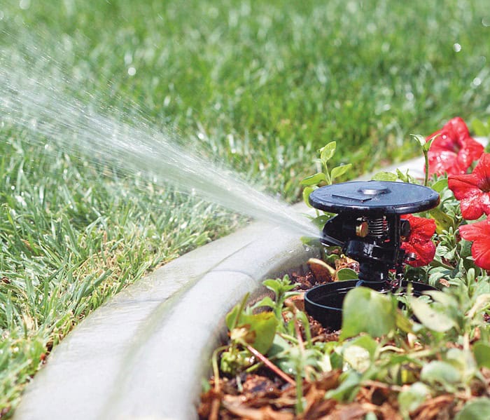Drip irrigation, on the other hand, delivers water directly to the plant roots through a grid of tubes with embedded emitters. This direct delivery approach is ideal for watering specific plants, rows of vegetables or areas with irregular shapes. By delivering water slowly and directly to the root zone, drip irrigation promotes deeper root growth and reduces weed germination. Please keep in mind that this system may not be suitable for large lawns, overly sandy areas or areas that require overhead watering.