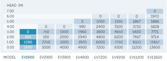 | Product Max. Flow Output (Lph) | 1800 | 3000 | 4000 | 4900 | 7200 | 9300 | 11200 | 13600 |