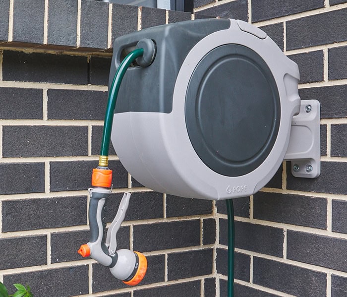 The Pope Auto Wind Hose Reel has a new and improved rewind system with stop and go action, ensuring the hose not only unwinds and rewinds with ease, but also locks at your desired length.