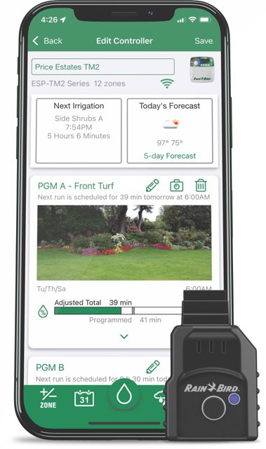 - WiFi Connectivity: By simply plugging in a Rain Bird LNK WiFi Module (included here), users can access, operate and monitor their irrigation system from anywhere. Internet-based weather information is used to make daily adjustments to the irrigation schedule, saving up to 30% in water.