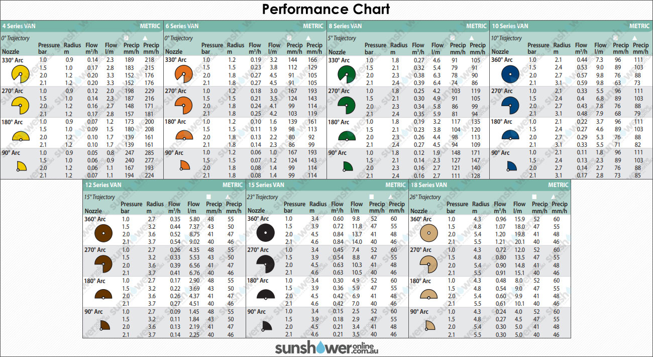 - 12, 15, and 18-VAN have matched precipitation rates with Rain Bird MPR nozzles
