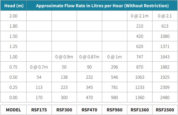 (Excluding RSF2500 - Float Pad & Spare Impeller