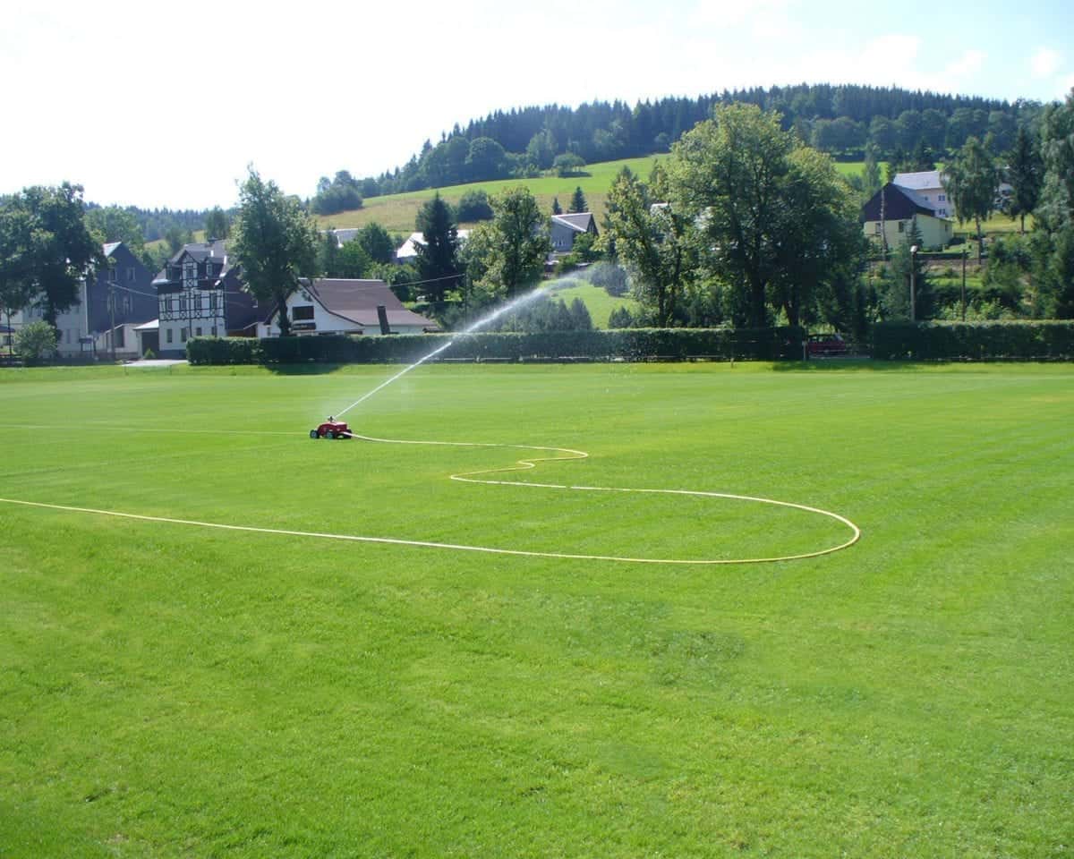 The Perrot RollcarT is a travelling sprinkler that is ideal for watering large turf areas. Capable of achieving a throw of up to 18 m in radius, the RollcarT can be used in larger turf areas, parks and sports grounds. The RollcarT starts travelling as soon as the water supply is turned on. The RollcarT is drawn toward a guide rope and turns off automatically at the end of its run.