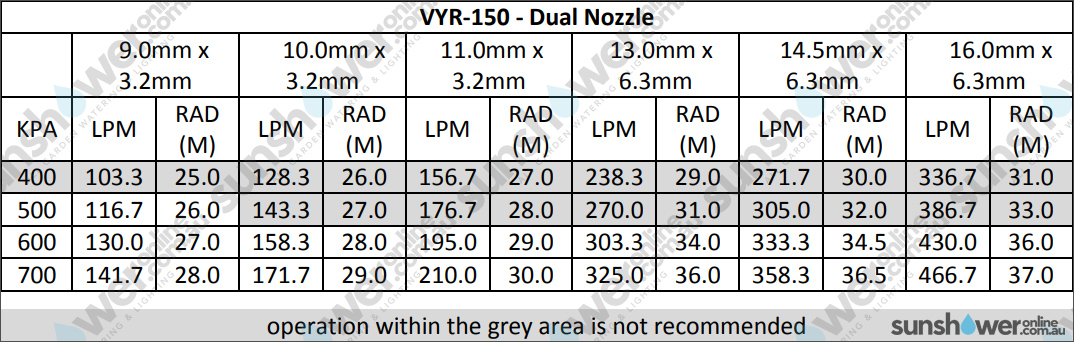 | Product Min. Flow Output (Lpm) | 103 | 128 | 103 | 103 | 103 | 103 | 103 |